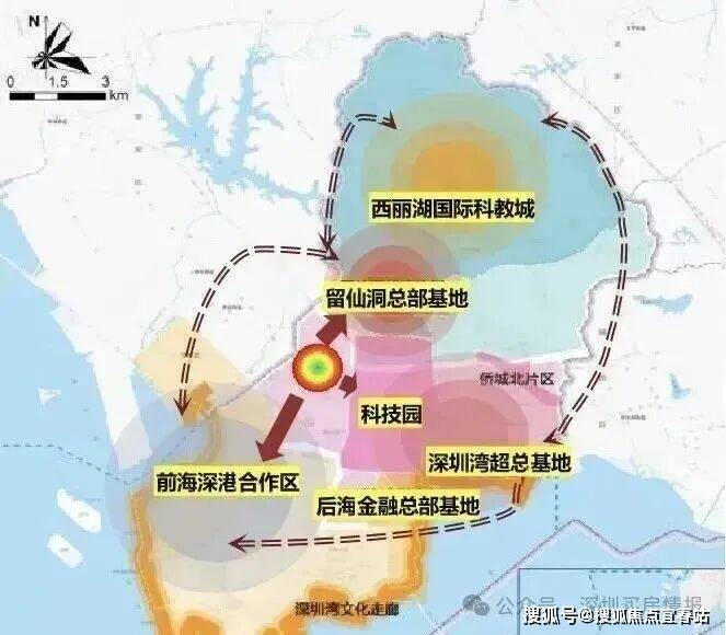 『1枢纽』:距离西丽高铁枢纽(在建中)约2.3km,其规划“高铁西丽站、城际西丽站”、“4高铁+2城际+4地铁”,规模超深圳北站