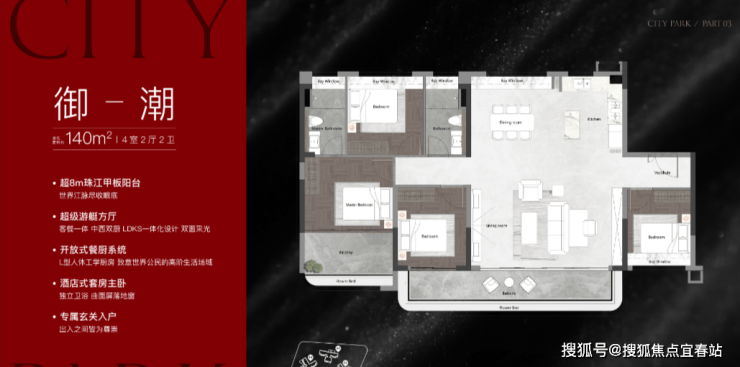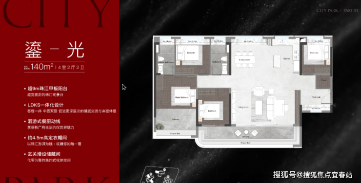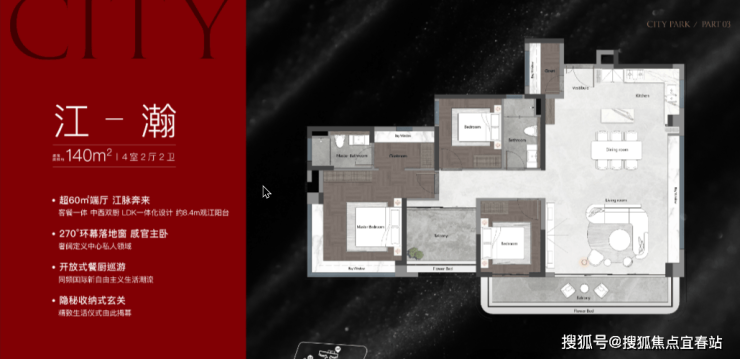 该栋为25层高,两梯三户设计,只有两个面积段,120㎡和140㎡,户型做得不错,在景观展现上用了功,极大程度去放大观江面,比方说超宽阳台、L型主卧转角飘窗、客厅预留观景飘窗等等,主打改善户型,2025年9月整体交房。