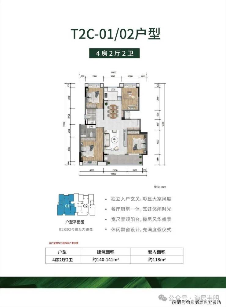 户型面积段:约110-141㎡(3房/4房)