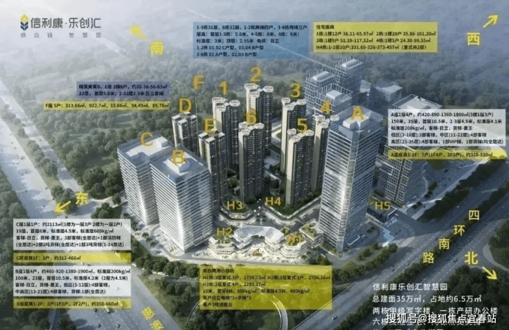 业态:2栋甲级写字楼、1栋产研办公楼、6栋高端住宅、2栋精英美寓、4个独栋和一栋联排合约3.2万m²商墅组成