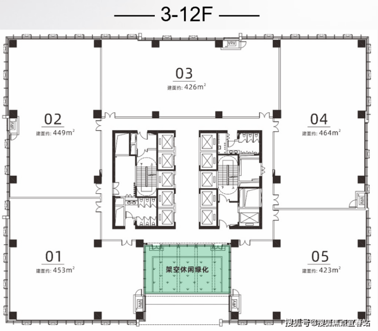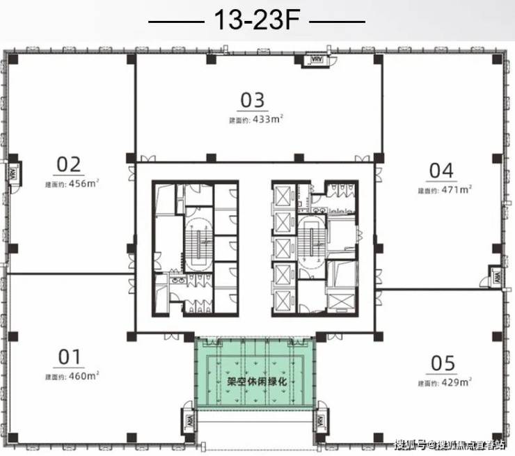 开敞式电梯厅设计,全天持续采光通风,安心健康绿色办公,会呼吸的电梯厅!