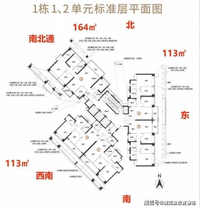 楼层高:1单元48层,2单元48层,3单元42层
