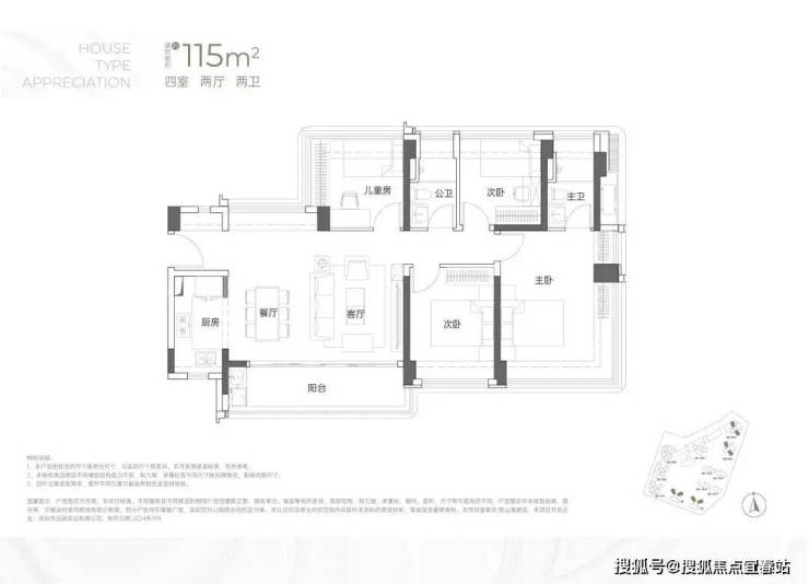 竖庭格局,西南向,基本居住功能与建面约108-110㎡4房2卫一致,但格局不一样,从目前公布的户型图上看,主要是主卧空间有了更大的提升,比如可以放更大一点的衣柜。但从位置上看,它所在的楼栋更靠近主干道,会有噪音影响。