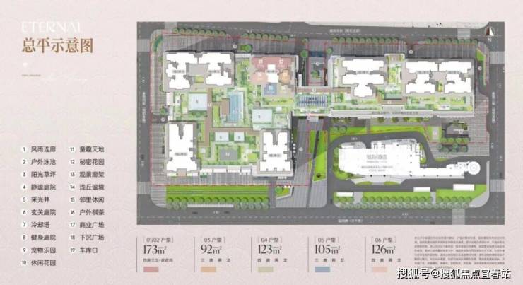 商业以林下客厅,香草花园,以及空中云墅三个主要核心景观中庭;双游泳池(一个室外、一个室内);架空层园林分别设置两个儿童区,一个健身区,以及一个宠物乐园等。