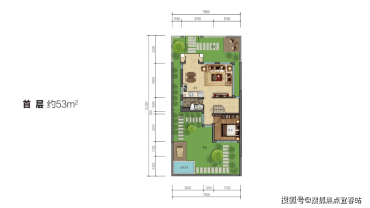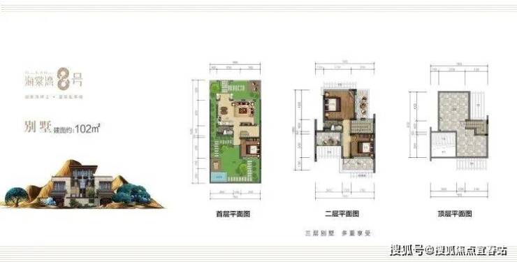 A别墅(70年产权/独享天地/前庭后院/温泉入户)建面102㎡,实得260㎡三房两厅三卫
