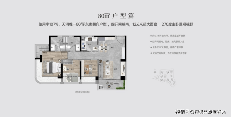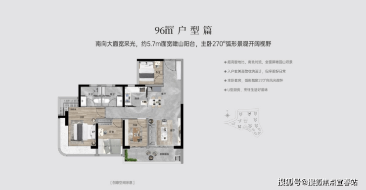 南向大面宽采光,主卧270°弧形飘窗瞰山景,打造自然宜居新场景
