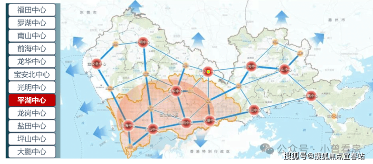 平湖中心与福田中心、南山中心等共12个城市中心将延续深圳多中心、组团式的空间结构,形成“一核多心网络化”的城市开发新格局。