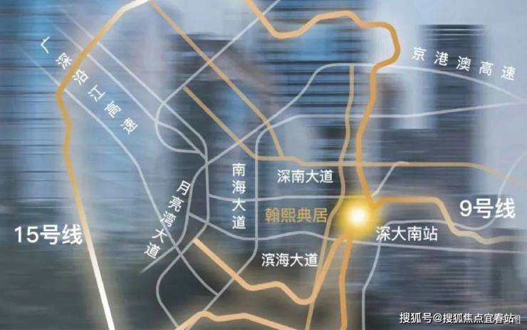 地铁9号线、15号线(在建中)交汇深大南站;9号线2站高新园、3站深超总、4站大前海区域;周边“四横三纵”主干道、双城际铁路及海空交通网络环绕,纵横驰骋,畅连全城。