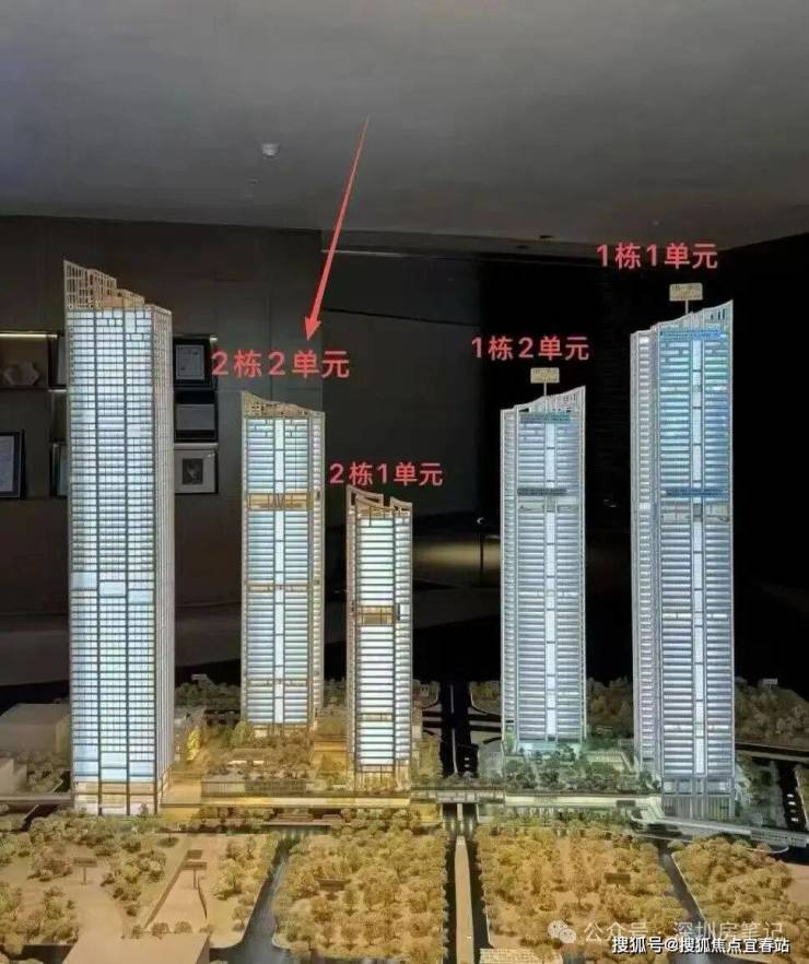 项目占地约3.85万㎡,总建筑面积约26.3万㎡,容积率7.59,分为南北两区开发。由五座150-250m塔楼组成,配建1栋幼儿园+1栋商业,采用错落布局和平面退台设计,以优化深圳湾景观视野。1栋公寓250m,4栋住宅分别150m、200m、200m、240m,层高3.6m。