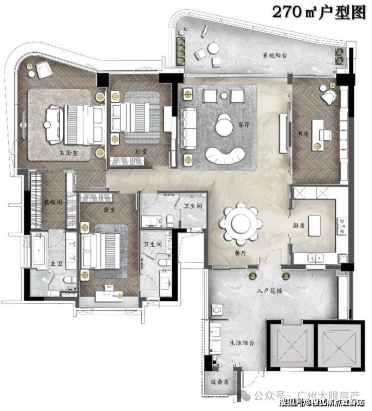 ⑥星级主卧套房,配备衣帽间及四分离卫生间