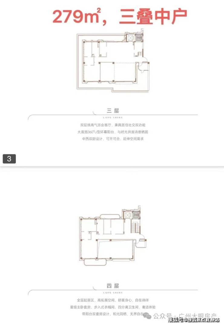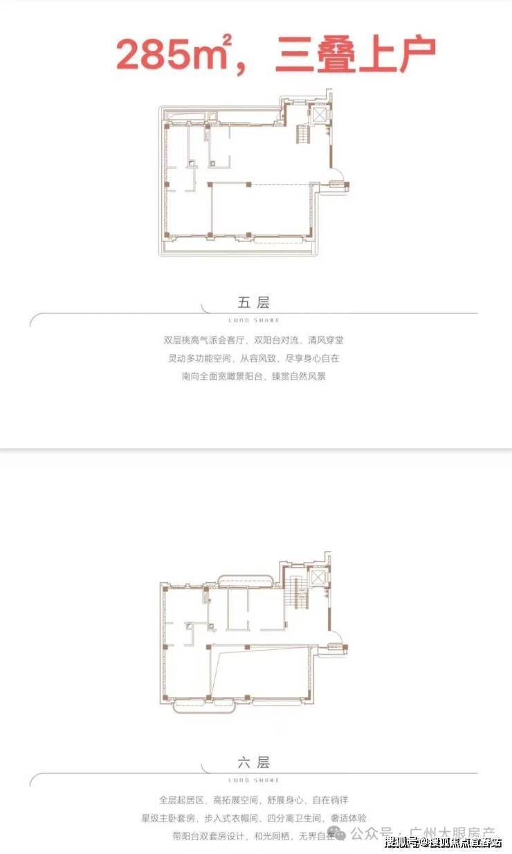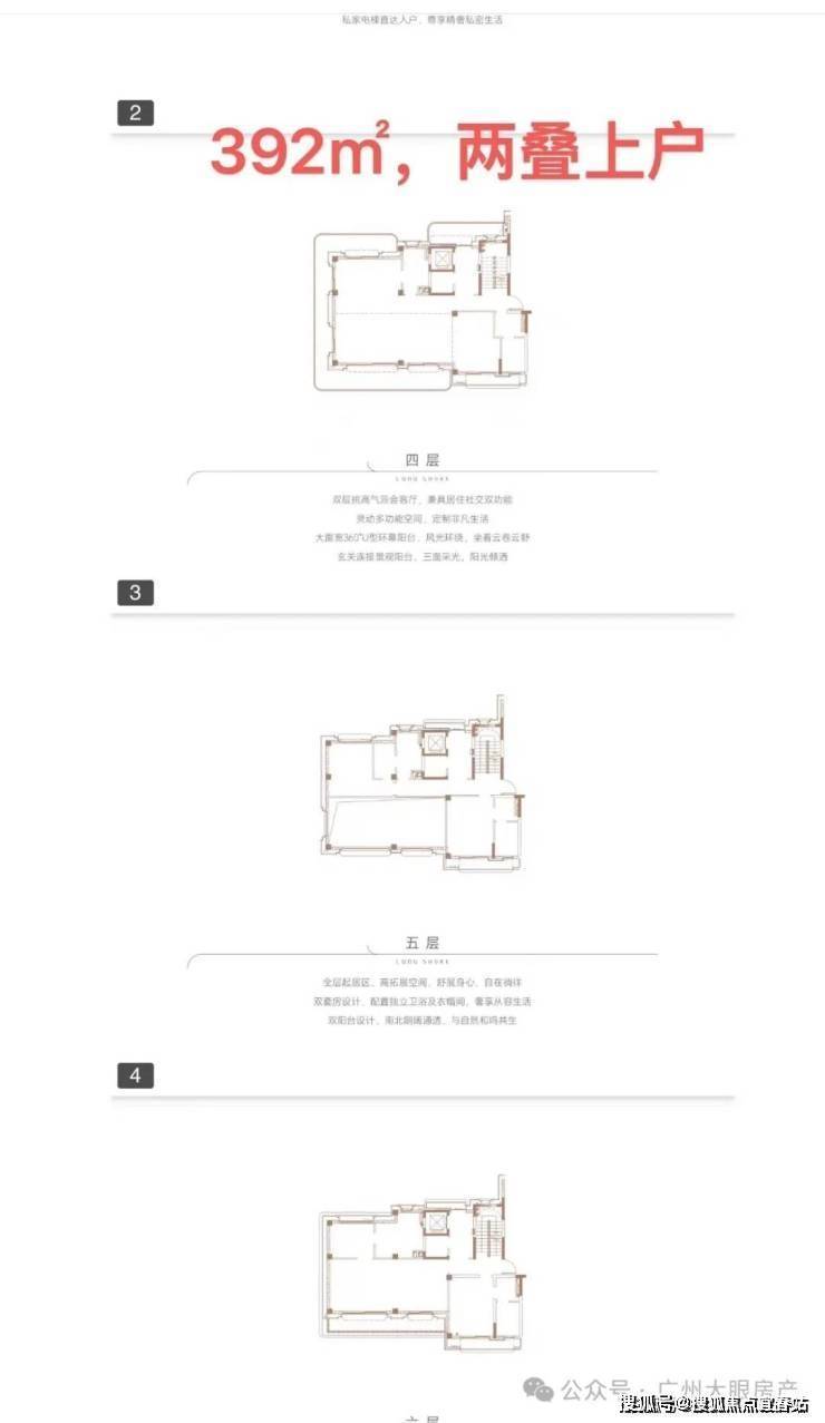 ●产品户型:两叠(上叠392㎡、下叠437㎡),三叠(上叠 285㎡、中叠279㎡、下叠305㎡)