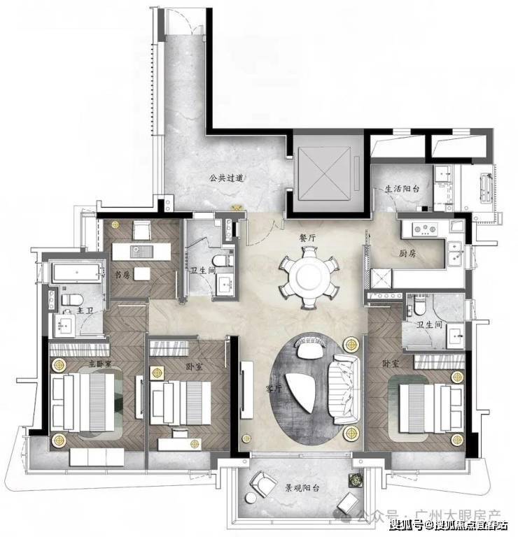 ⑤多套房设计,灵动多功能空间,满足三代同堂居住需求