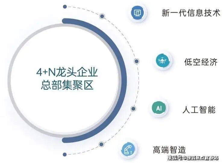 项目建面约62万㎡,打造4栋超高层地标研发办公、2栋精品公寓、6.1万㎡开放式商业街,围绕4大产业及周边优势产业集群上下游企业,打造4+N龙头企业总部集聚区,未来投入使用后将容纳500家企业办公、约2万人办公生活。