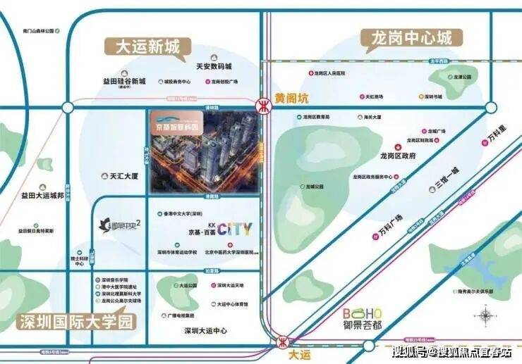 •高效交通:地铁16号线黄阁坑站直连,风雨连廊无忧通勤,未来10/16/21号线三线交汇,3站大运枢纽换乘3/14号线和深大城际,30分钟达罗湖、40分钟达福田CBD,1小时达湾区;2分钟直上高速,武深、水官、深海高速互联,高效商务出行。