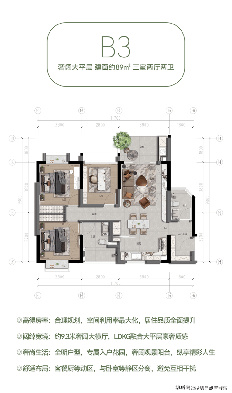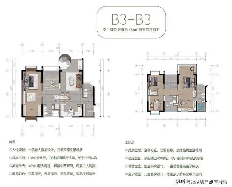 具体来说,A-2户型(建面约60㎡)以独立入户花园和客餐厨一体化设计,打造宜居范本;B-2户型(建面约84㎡)则通过通透宽厅和观景阳台,让阳光清风入室做伴;B3奢阔大平层(建面约89㎡)以高得房率和阔绰宽境,提升居住品质;A-2+B-2大平层(建面约142㎡)则通过豪宅质感和私密有序的设计,满足家庭成员的多元需求;而B-3+B-3空中微墅(建面约178㎡)更是以人性规划和品质宜居的设计理念,打造出一处尊贵的居住空间。