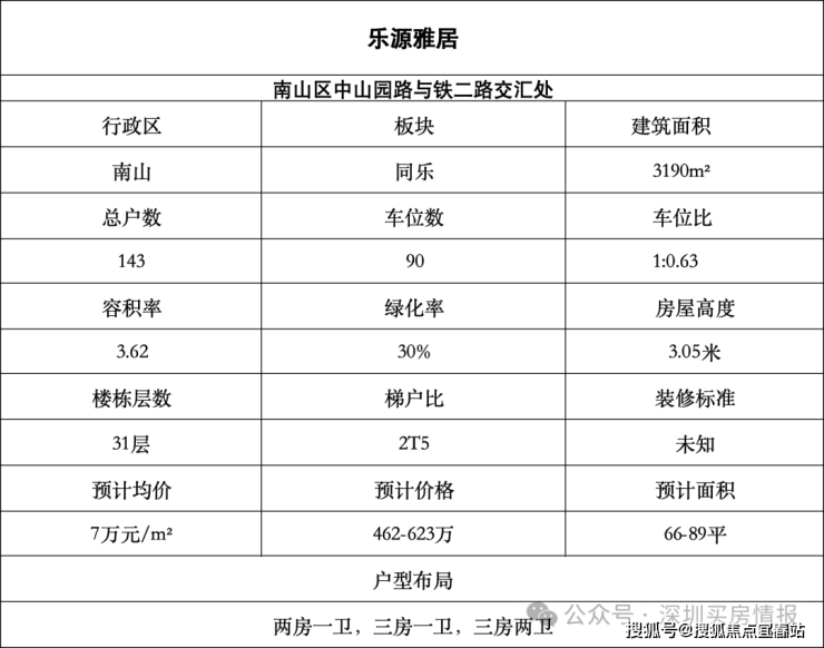 南山区同乐板块【乐源雅居】,面积66-76-83-89㎡2-4房,共102套。最大的亮点是户型,76㎡就能做到3房,89㎡可以做4房。