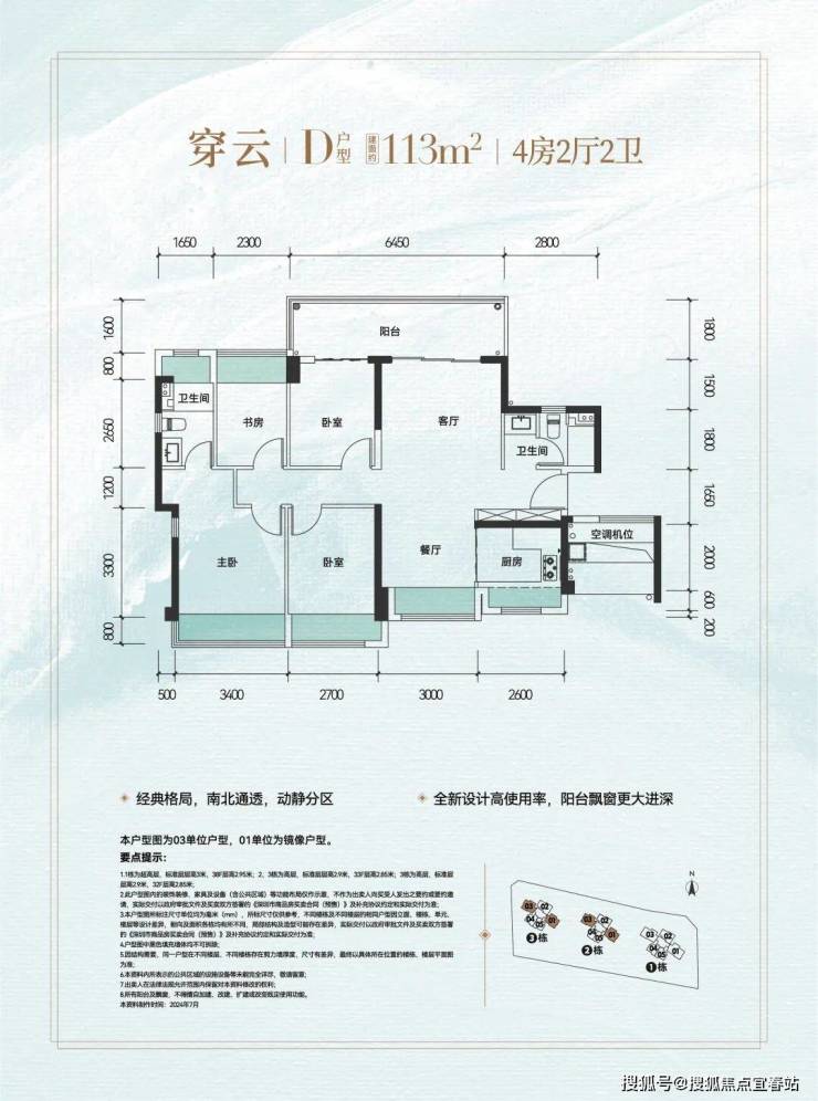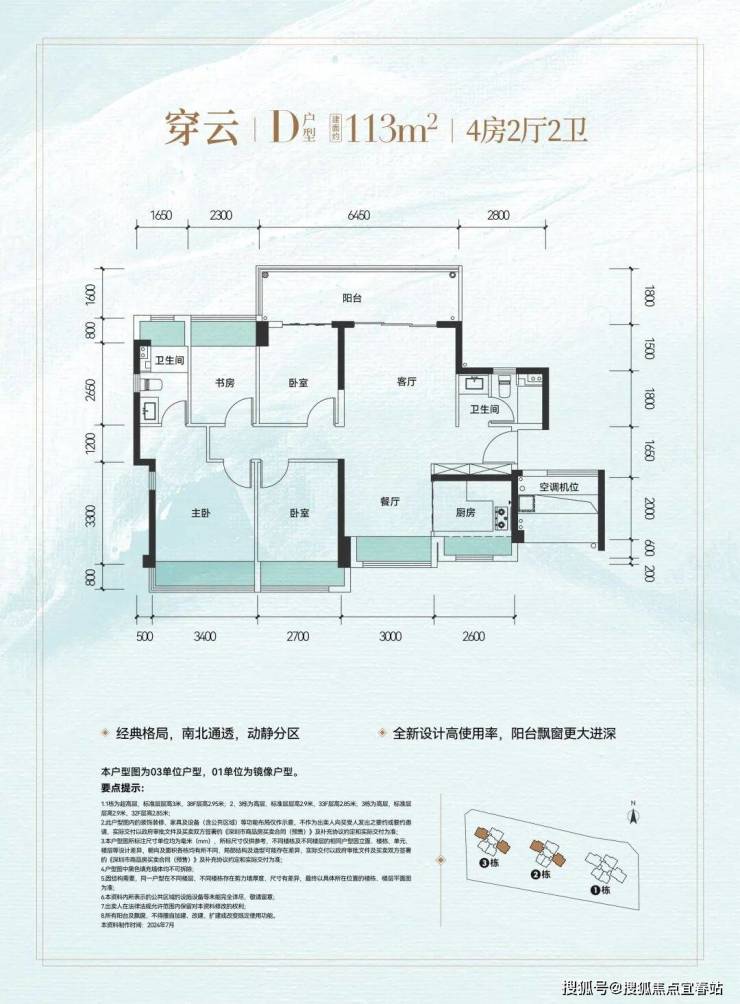 D户型 | 建面约113㎡四室两厅两卫:南北通透双采光