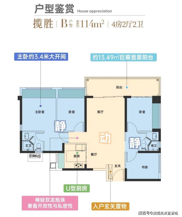 B户型 | 建面约114㎡四室两厅两卫:双龙抱珠户型