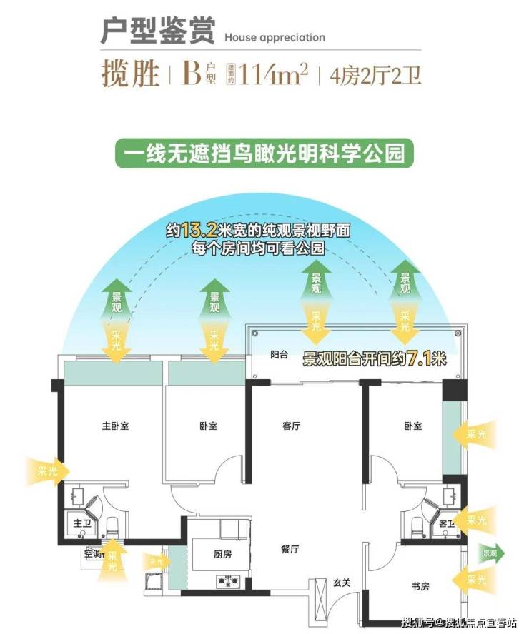 •全卧室+阳台无遮挡观景光明科学公园:总共约13.2米宽的视野面,让每一位居住者都能享受满眼绿意。