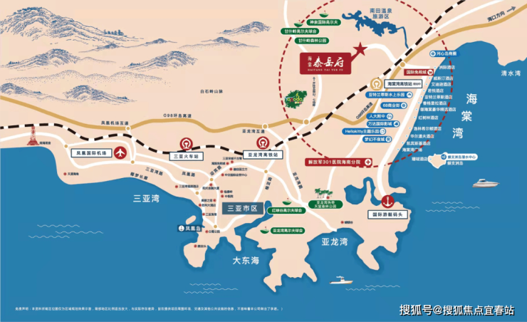 游:蜈支洲岛、椰子洲岛、皇后湾群岛、海棠湾水稻国家公园闲:甘什岭高尔夫俱乐部、神泉国际高尔夫、国际游艇码头食:32家五星酒店精品餐厅、68美食街、海昌不夜城等50余等特色餐饮