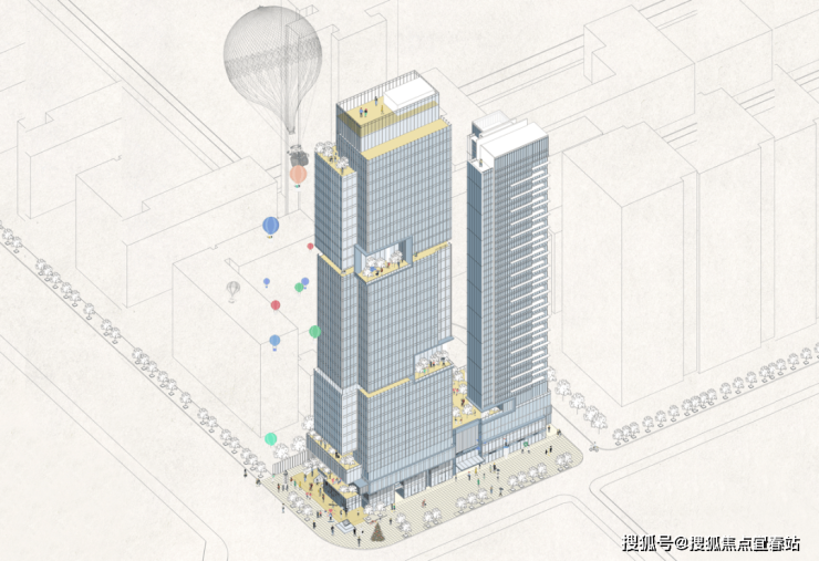 设计将办公、居住、商业、文化活动、社区交往、绿地系统叠合在一个立体的垂直空间中,通过“城市叠合”理念,打造区域生机勃勃的“城市之心”。