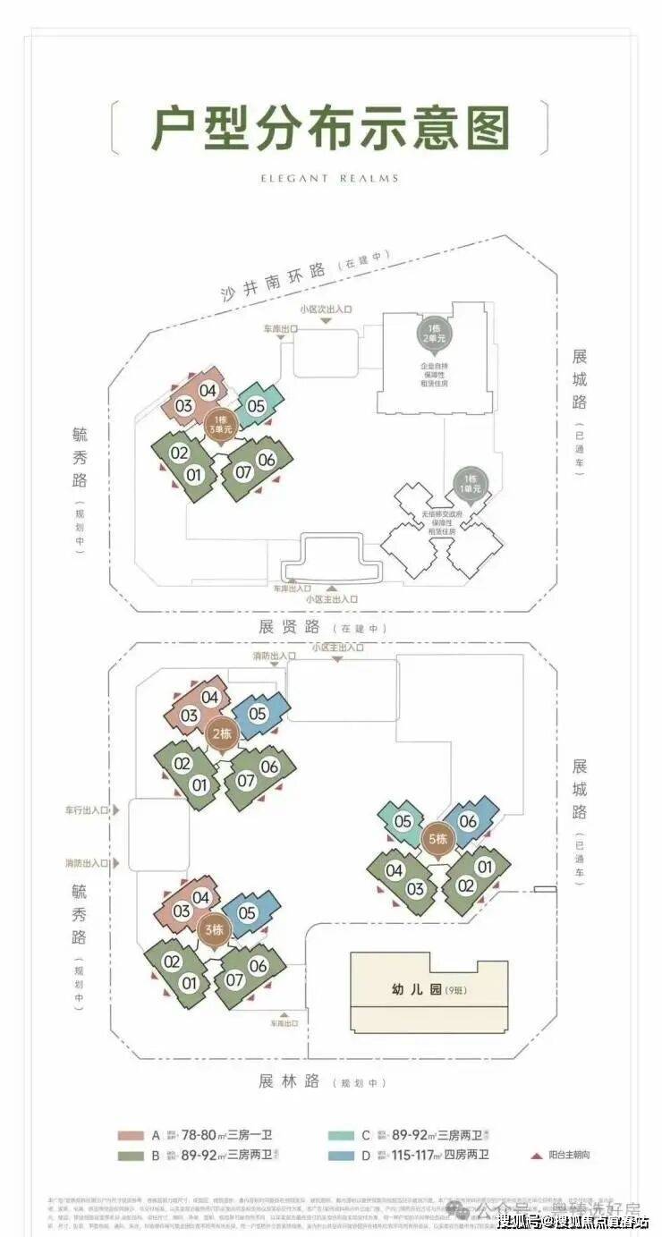 招商会展湾雍境名邸位于宝安沙井大前海会展湾片区的招商会展湾雍境名邸,本次是招商会展湾雍境二期,首推1栋3单元的195套房源,面积段有80㎡3房1卫,91㎡3房2卫,92㎡3房2卫3种户型,是3梯7户的普通高层,预计2027年9月精装交楼。