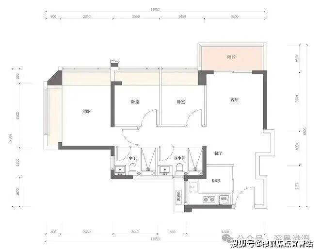 80㎡做到三房两卫,89㎡竟然做到了带6.3米超级大阳台,从户型使用率测算看,加上飘窗进深各方面可利用面积,基本上约达到了95-100%使用率的标准!
