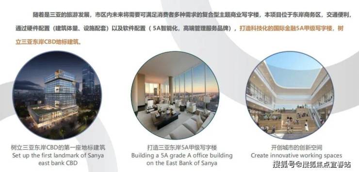 💫申亚金融大厦💫✨黎岸申耕 掘金时代 ✨📎 经济技术指标:📌 规划用地面积:10530㎡🏢 总建筑面积:72957㎡🎗 开发商:海南申亚东岸投资有限公司🎀 设计团队:丹麦SHL建筑事务所🕋 建筑风格:北欧简约、智慧楼宇🚩 项目定位:金融中心 时代前沿📏 建筑高度:80米🏢层数:地下3层,地上18层📝 标准层面积:2420㎡📐 层高:① 大堂1~2层挑空10.5米② 标准层和花园层层高4.2米-4.5米, 17、18层层高4.5米🔍 容积率:4.5🌿 绿化率:25%🚊 电梯: 主楼八部高速客梯,一部VIP高速客梯,一部货梯。国际一线品牌蒂森克虏伯电梯。🗝 交房日期:2024年12月📎 项目简介:申亚金融大厦由海派文化地产先锋上海申亚集团耕耘开发,于2019年竞拍取得三亚总部经济区首批挂牌地块,为海南自贸港建设起到先锋表率作用。项目位于海南自贸港三亚东岸总部经济区迎宾路核心位置,毗邻东岸湿地公园和大悦城购物中心,将打造成三亚独特海派血统的金融地标建筑。5A级写字楼┆多功能复合型┆智慧楼宇 花园式办公┆下沉商业广场