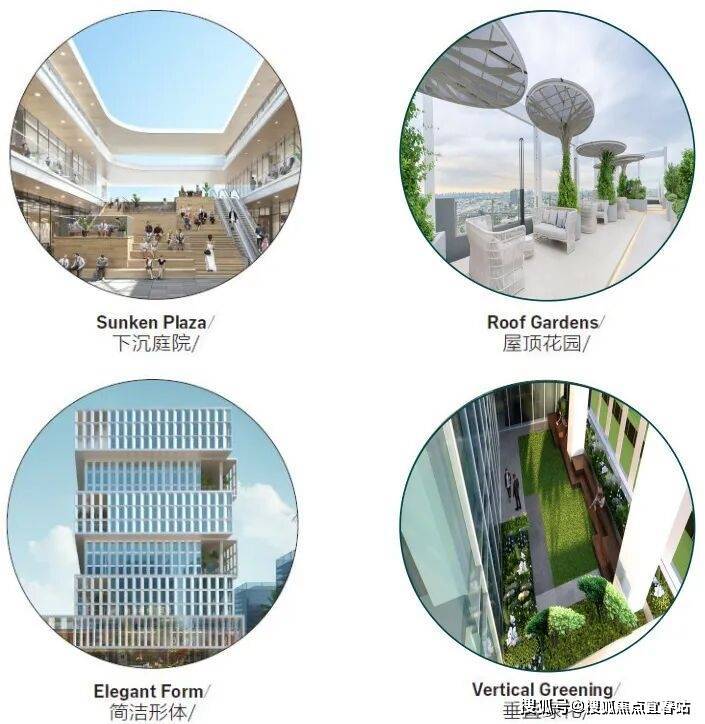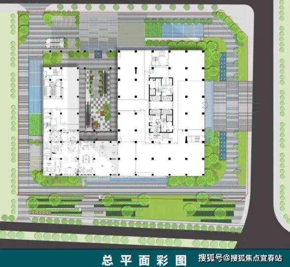 现代简洁的建筑形体 垂直生态的景观空间灵活高效的办公空间 生态交互的室内共享绿色生态的室外景观 活力多样的商业街区【项目总平面彩图】