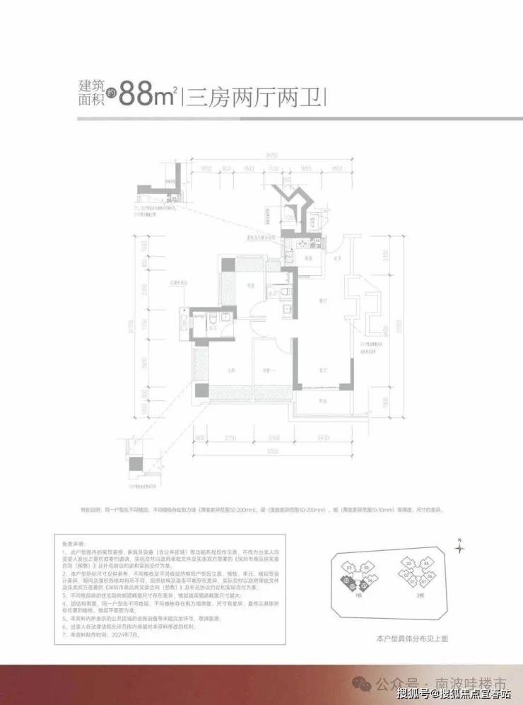 【产品户型】:建筑面积约85-88m²三房两卫、建筑面积约110-114m²四房两卫、建筑面积约113-119㎡四房两卫
