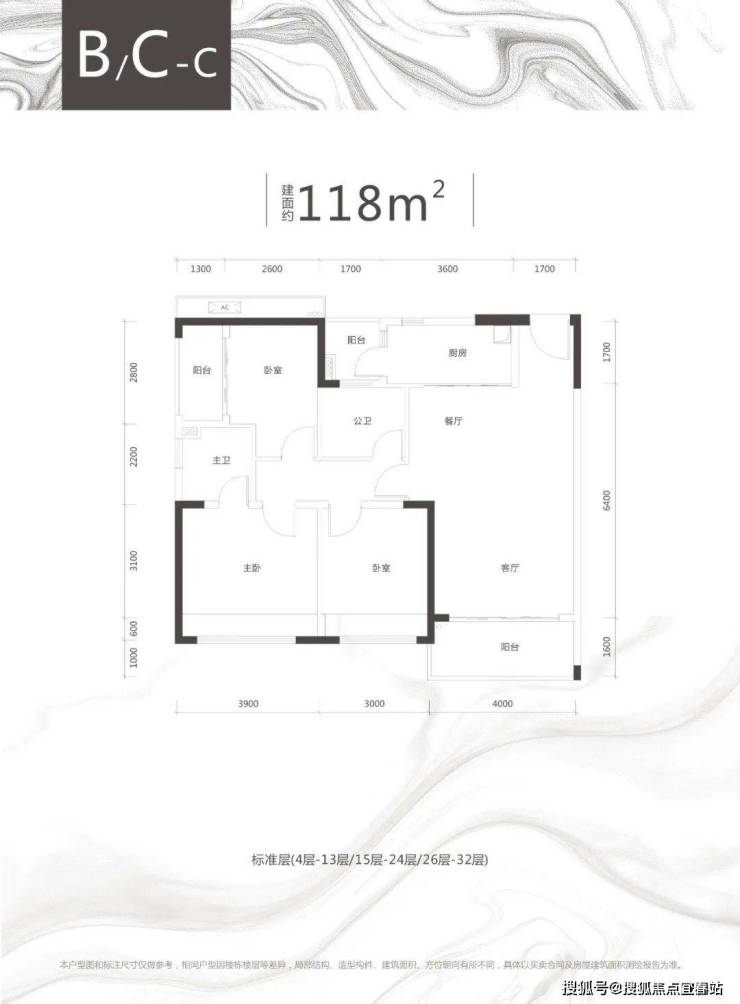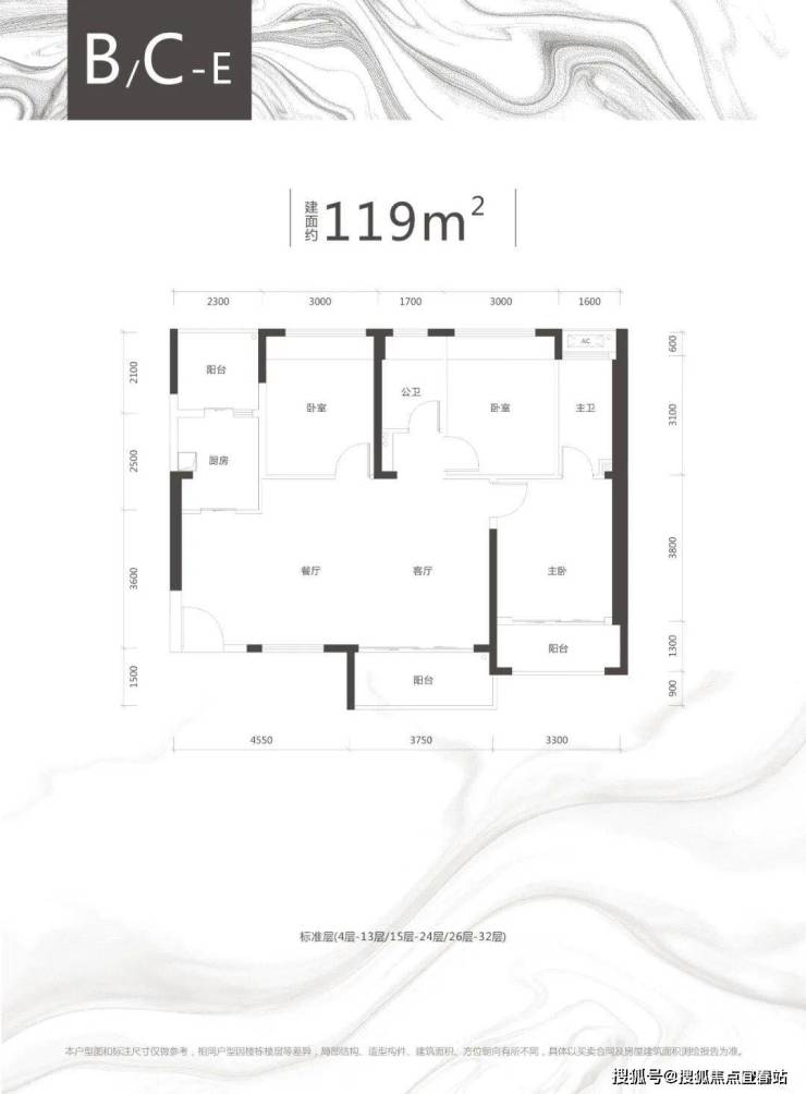C栋B/C/D/E户型、约100㎡两房两厅两卫),118-119㎡三房两厅两卫