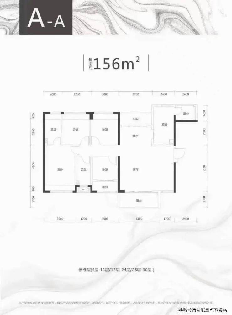A栋A户型、约156㎡四房两厅两卫