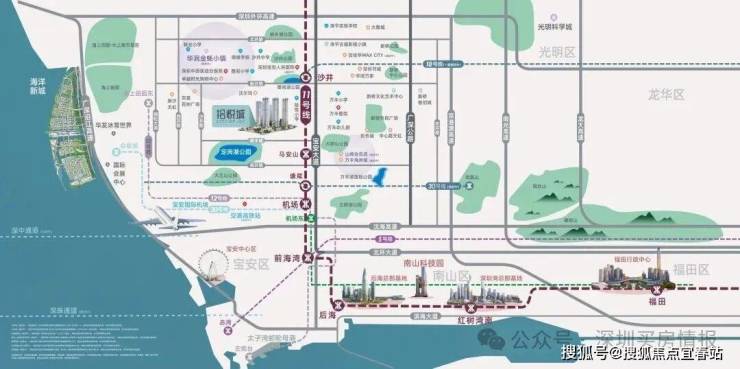 自驾方面,项目呈现“一横四纵”的路网布局,包括深圳外环高速,广深沿江高速、宝安大道、广深公路(107)和京港澳高速等,轻松畅达全城。