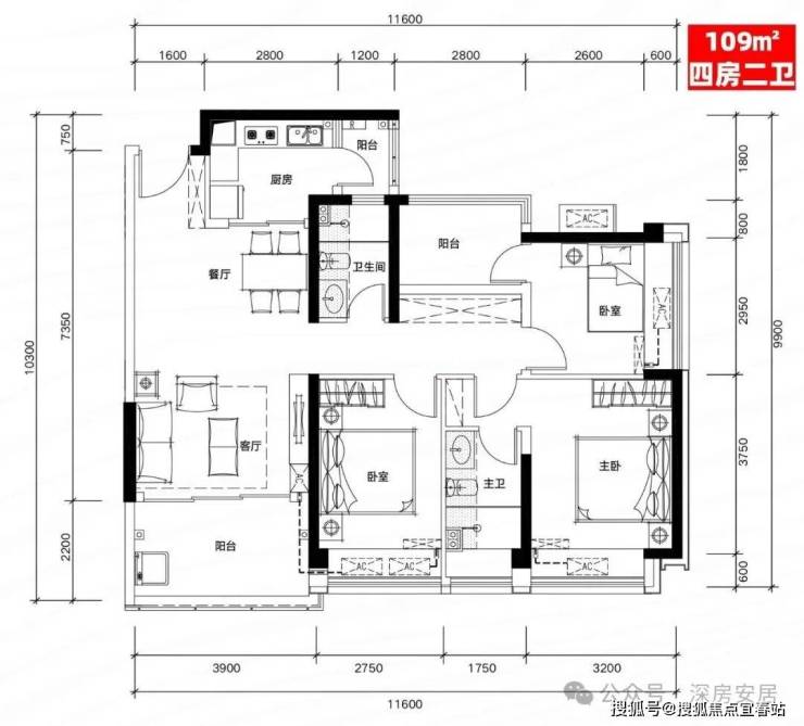B03户型:109㎡四房二厅二卫