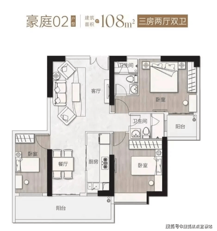 豪庭02单元 ——【108㎡全南向!三房二厅二卫】