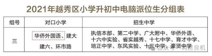 并且,2021年越秀区小升初电脑派位分组中,广州市华侨外国语学校对口执信中学、广州二中、广大附中、育才中学等名校,是越秀区电脑派位至优配置的分组!