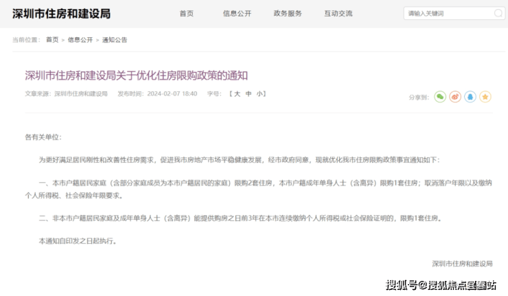 2月7日,广东省深圳市住房和建设局发布关于优化住房限购政策的通知。