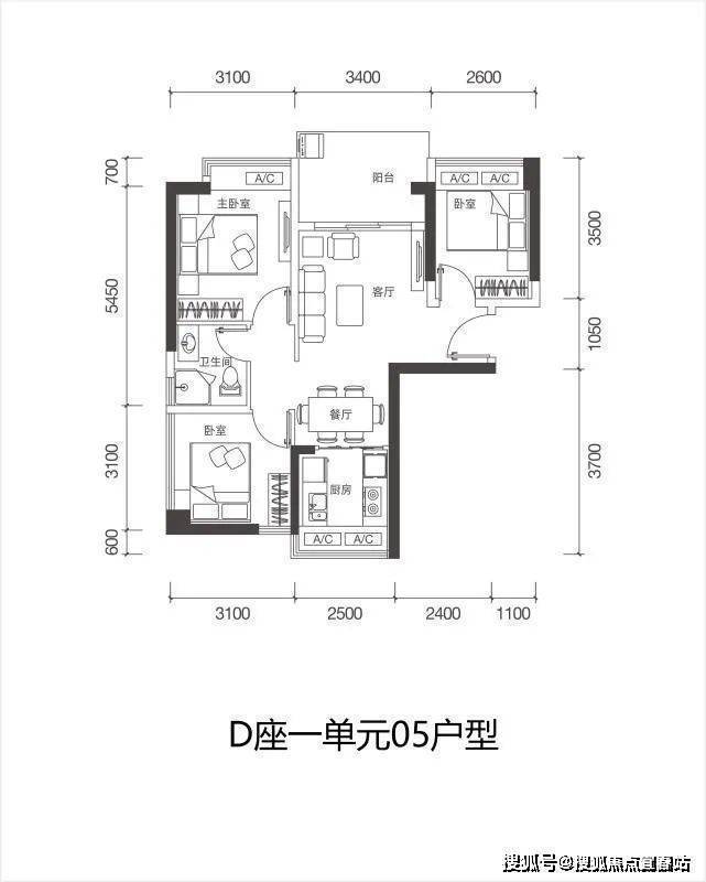 户型:3房2厅1卫