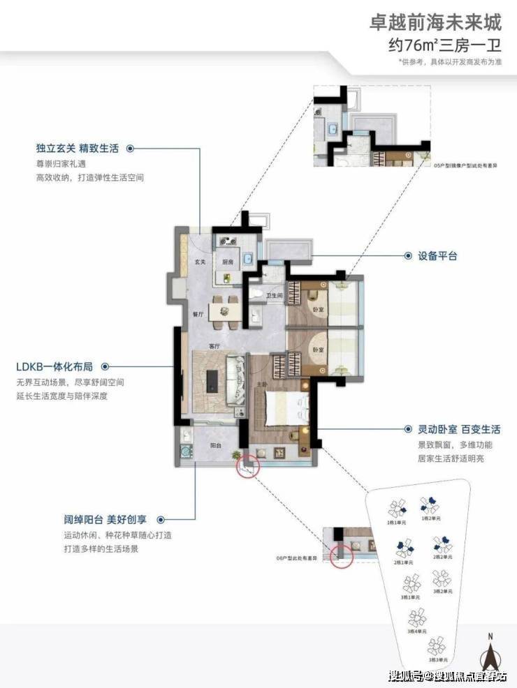 76㎡的3房2厅1卫,折后总价264-278万/套,折后单价3.47-3.63万/㎡。