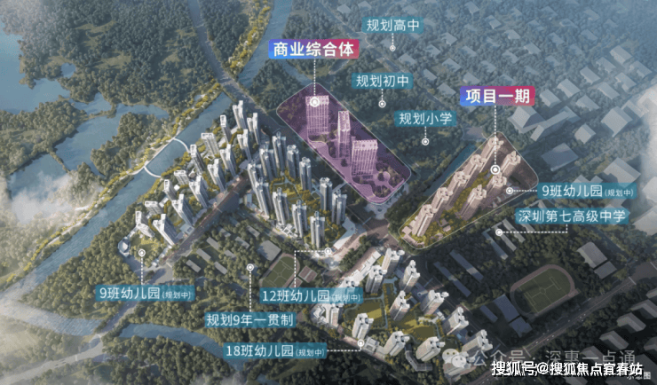 优质高中方面,项目距离深圳第七高级中学(省一级公办高中)仅约210米,步行可达,2025年中考录取分数线AC类走读为488分,D类为515分,教育资源优质。