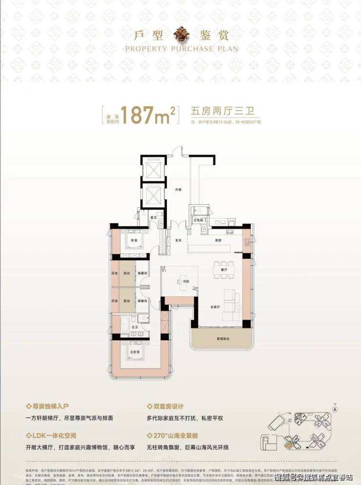 超高得房率:主力户型得房率约102%,约187㎡户型更是高达约111%,花同等价钱可多享约25-48㎡实用空间。