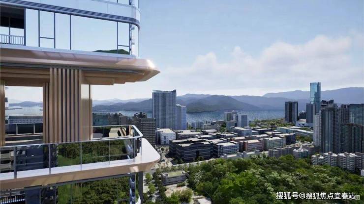 区域首个公建化建筑,立面采用360°全玻璃幕+铝板,局部采用蓝灰色银LOW-E玻璃兼具采光与隔热降噪功能,约0.6 黄金窗墙比(远超常规住宅约0.3-约0.5 标准),将山海风光装裱入室。