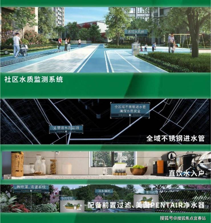 配备前置过滤系统、社区水质监测系统、全域不锈钢进水管、美国PENTAIR净水器(白宫同品牌)