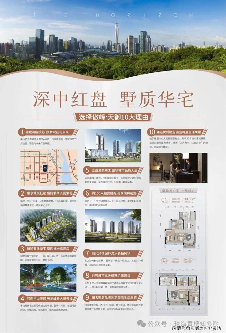 【黄金地段】傲峰·天御地处火炬开发区,紧挨成熟东区,正处于中山主轴博爱路和深中通道延线翠亨快线的黄金交汇点深中融城第一环,媲美深圳深南大道