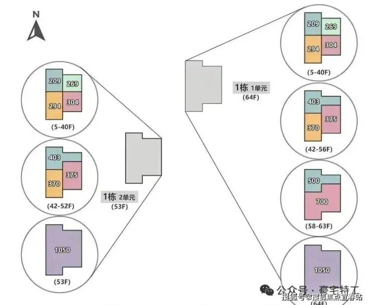 超高区(58层起,200米以上):约500-700㎡顶级大平层。