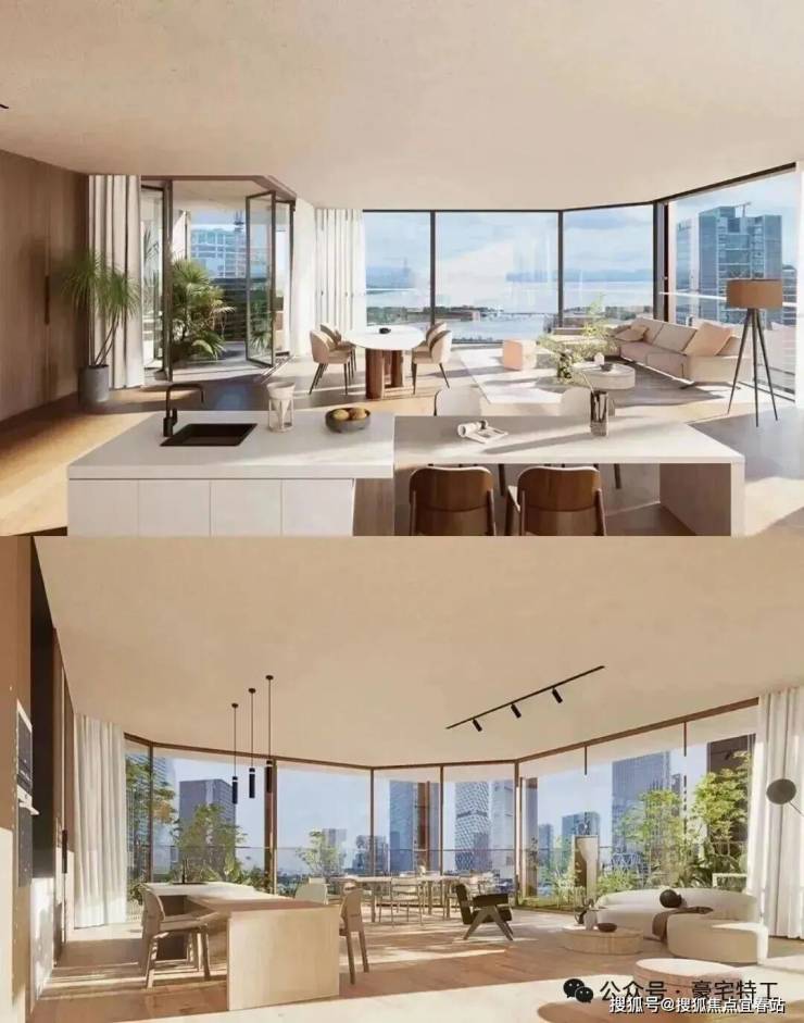 92%超高使用率(深圳豪宅平均约85%),采用第四代住宅设计,配备空中庭院及全玻璃幕墙。