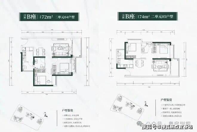 72-74㎡两房两厅一卫(2 栋 B 座二单元 04/05 户型)