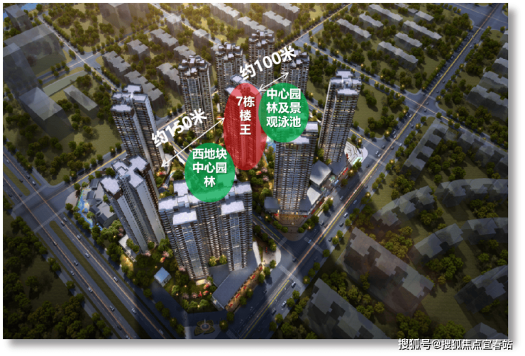 位置属性:项目中心位置,楼间距是各楼栋中最宽,东北向约100米,西南向约150米。