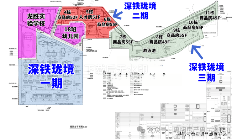 深铁珑境2期,总建筑面积约21.31万㎡,计容建筑面积约9.59万㎡,共由3栋51-55层的超高层住宅组成,其中4栋商品房52F,5栋人才房51F,6栋商品房55F。