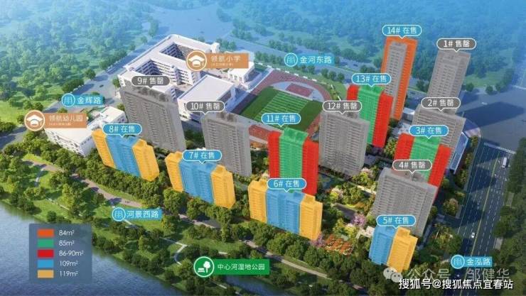 航空新城稀缺的一线滨河景观,紧邻金湾中心河湿地公园,坐享中心河湿地公园头排景观。